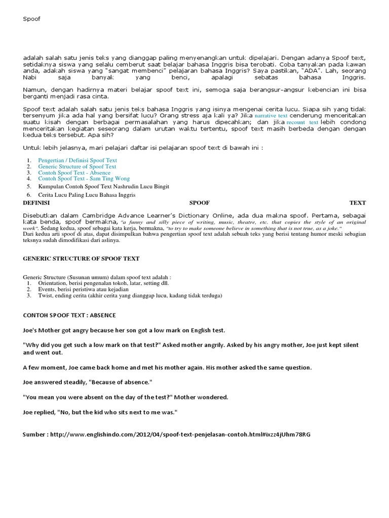 Kumpulan Contoh Spoof Text Dan Artinya from www.sekolahbahasainggris.com Check spelling or type a new query. Maybe you would like to learn more about one of these? We did not find results for: