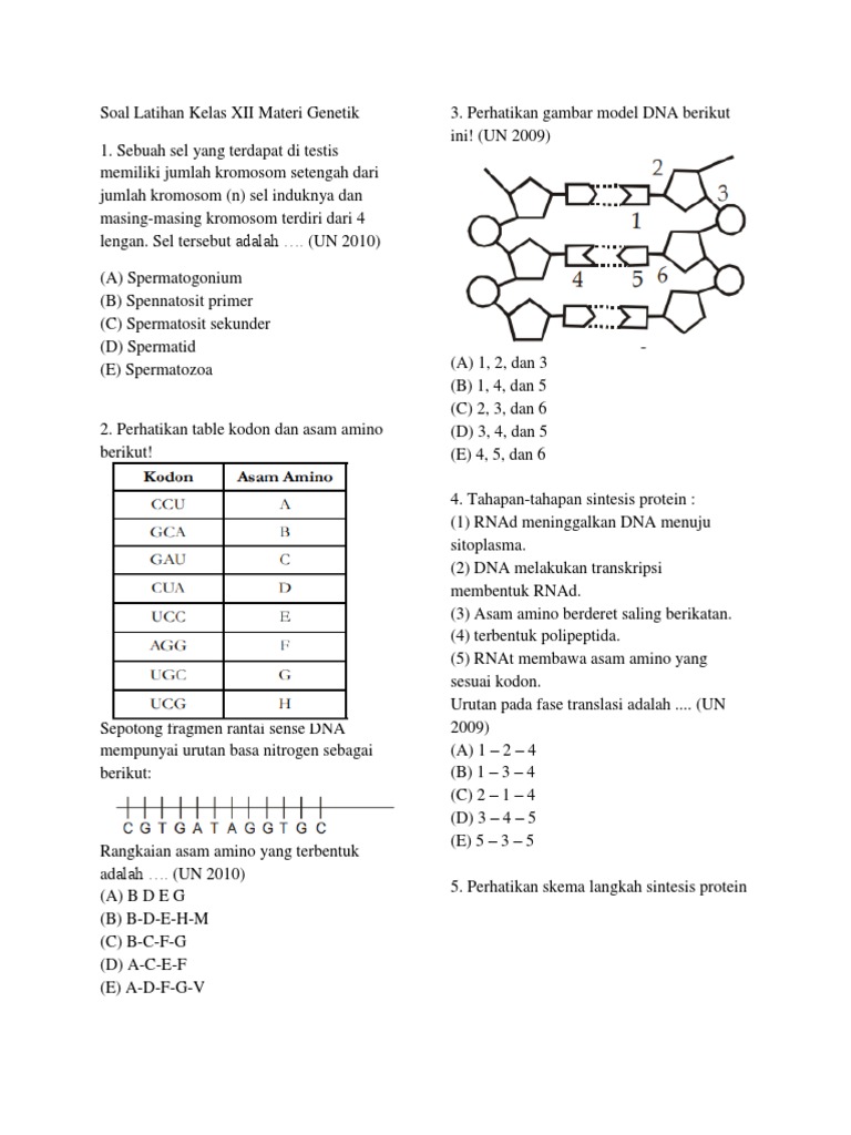 Soal Essay Tentang Materi Genetik Xii Jawabanku Id from imgv2-2-f.scribdassets.com Kunci jawaban di bawah soal. September 03 2019 255 k. Percobaan transformasi pada bakteri diplococcus pneumoniae yang dilakukan oleh griffith padatahun 1928, telah memberikan keyakinan. Soal dan kunci jawaban materi mutasi sma kelas xii. Pembaca sekolahmuonline, berikut ini kami posting untuk anda contoh soal mata pelajaran biologi dan jawaban atau pembahasannya untuk kelas 12 (xii) sma dan ma bab materi genetik atau substansi genetik. Jadi kami ingin membagi sedikit rangkuman biologi mulai dari kelas 10 sampai 12 sma. Kunci jawaban soal dan jawaban bahasa inggris pilihan ganda & uraian, kunci jawaban lengkap uas/pas sma kelas 12 soal dan jawaban latihan untuk penilaian akhir semester (pas) maupun ulangan akhir semester (uas) mata pelajaran sma kelas xii semester 1 atau ganjil. 10 uraian soal dan jawaban uas biologi kelas xii.