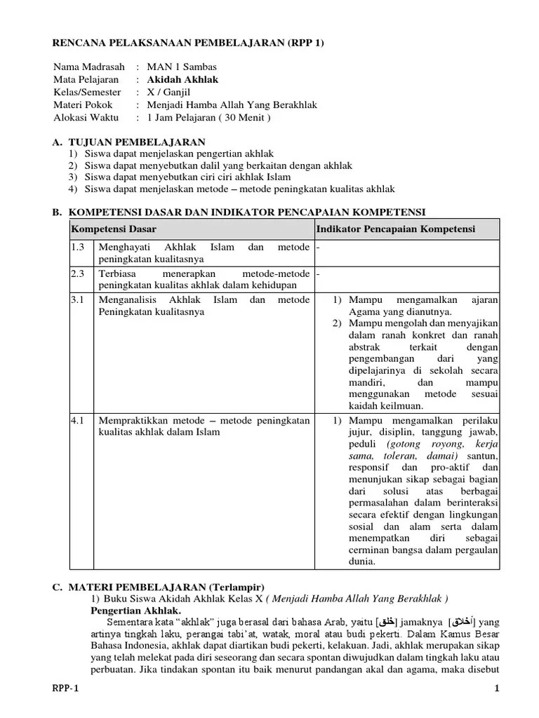 السلام عليكم و رحمة الله و بركاته. Rpp 1 lembar adalah rpp yang di susun hanya 1 lembar terdiri dari 3 komponen yaitu tujuan pembelajaran, kegiatan pembelajaran, dan penilaian. Rpp 1 lembar akidah akhlak madrasah ibtidaiyah (mi) terbaru kelas 1 semester 1. 20/21 (1 lembar daring dan luring) k13. Rpp 1 lembar aqidah akhlak k13 revisi 2020 kelas 7, 8, 9 pai khusus mts.