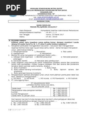 Soal Unbk Administrasi Perkantoran 2019 : Soal Uas Pengantar Ap Semester 1 - Contoh soal skb administrasi perkantoran 2019 2020 source:. Based test dan ujian 6045 kst administrasi perkantoran pdf. Perkantoran kerjakan soal di bawah ini pilih salah satu jawaban yang anda anggap benar. 4 latihan pembahasan soal administrasi perkantoran soal latihan dan pembahasan un unbk usbn smk 2019 tahun pelajaran 2018/2019. Contoh soal tes administrasi perkantoran dan jawabannya, soal unbk 2019 teori kejuruan administrasi perkantoran, soal un produktif. Soal dan jawaban ukk smk ap .